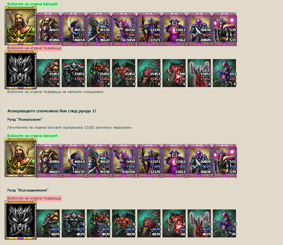 Кралят подготви 46 000 превозвачи, които могат да носят всичко 46 000 воини, които имат остри мечове,40 000 конница с най-добрите коне, 10 000 летящи война с зорки очи, 12 000 елитни стрелци, които никога не пропускат, 15 000 лечители имаше и няколко наемници които дойдоха с него, магьосници, които подготвят най-добрите свитъци за тази армия!Сега всичко е наред, армейски брони блестяха под слънчева светлина и войниците викаха, звучащи с ехо от планини,Армията започна да атаката,Войниците на армията се сбогуваха помежду си с приятели, приятели. Те ще умрат, ще спечелят или умрат всички заедно,но те ще се запишат в история,Дори героят на чудовища избяга, когато чу тази армия да идва за него. Кралят на кралствата не можеше да повярва на очите си, че героят на чудовището бяга. сега е време да унищожим останалата част от чудовищната армия и да вземем обещаната съкровищница.И след като започна голямата война, дори тя е много тежка битка без герой-чудовище, воините следваха стрелците, летците са след конници на чудовище.Всички стрелци се сражаваха, а останалото време следваше всички летящи наоколо. Героят Глефалин управляваше много добре битката, битки приключиха, лечителите възкресяват мъртви тела. Това беше невероятна война и завърши с голяма победа.Този крал не можеше да повярва отново на очите си, Войната остави огромна плячка и кралят смята че неговите армии ще бъдат по-големи от всякога и може да купува редки артефакти и да се развива , накрая получи това, което искаше.Древните държат на думите си и дават тези много неща. Много много години по-късно тази неестествена армия отново е победена. Има хиляди черни скъпоценни камъни .Пратеници изпратиха по цялата ми земя новината, че руината от 7-мо ниво са унищожена !Това не беше краят, това е началото на новата ера, тези свръхестествени неща никога не свършват в My Lands, а тази победа прави кралството много здраво и мощно от досега.А относно героя-чудовище той избяга, но никога няма да се откаже, за да направи армия и да се появи отново ...