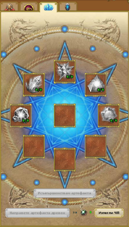 В центъра на олтара се намира слот за артефакта, който искате да усъвършенствате.