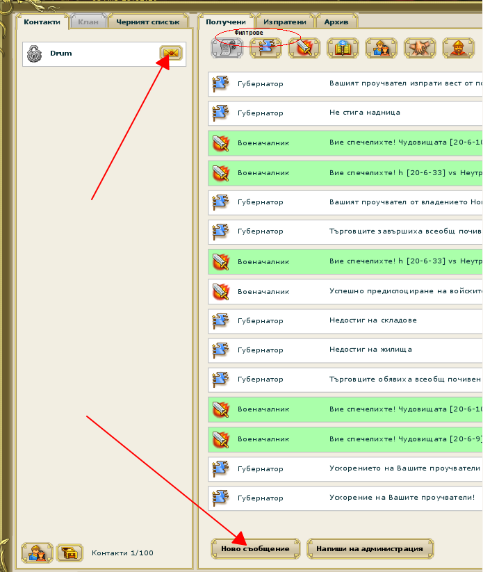 В игровата поща може да се влезе, като се натисне бутон „Съобщения” в левия долен ъгъл на екрана.