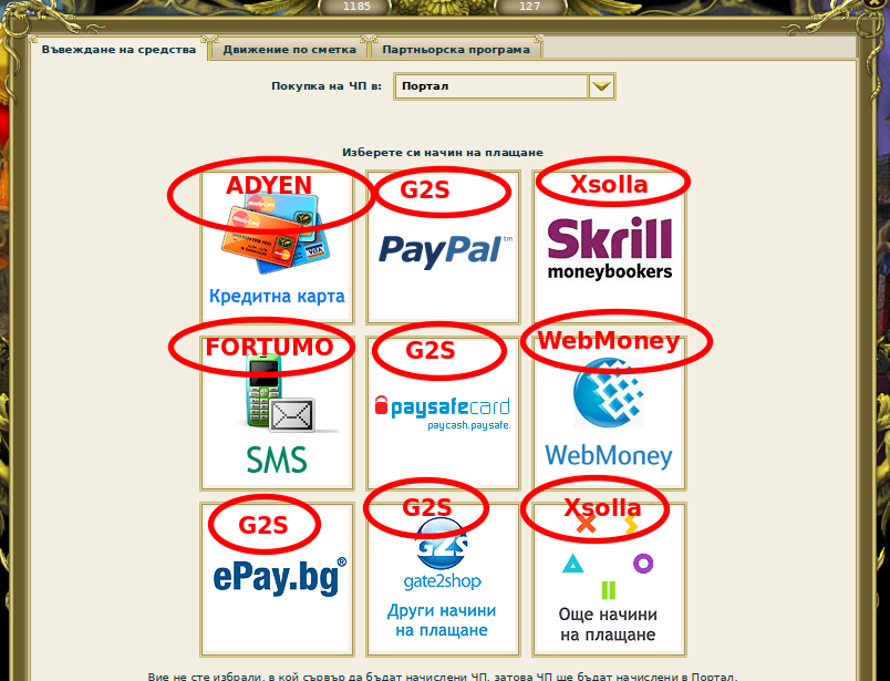 Ако Вие играете само в един сървър, по-добре е да платите направо от сървъра, като натиснете в сандъчето бутона «Добий ЧП». Ако правите това от портала — не забравяйте да прехвърлите ЧП в избрания сървър.