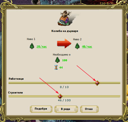 Ако във владенията не са запълнени всички места за строители и работници и има свободно население, свободните хора могат да бъдат изпратени на работа с бутоните “Запълни сградата със строители” и “Запълни сградата с работници”.