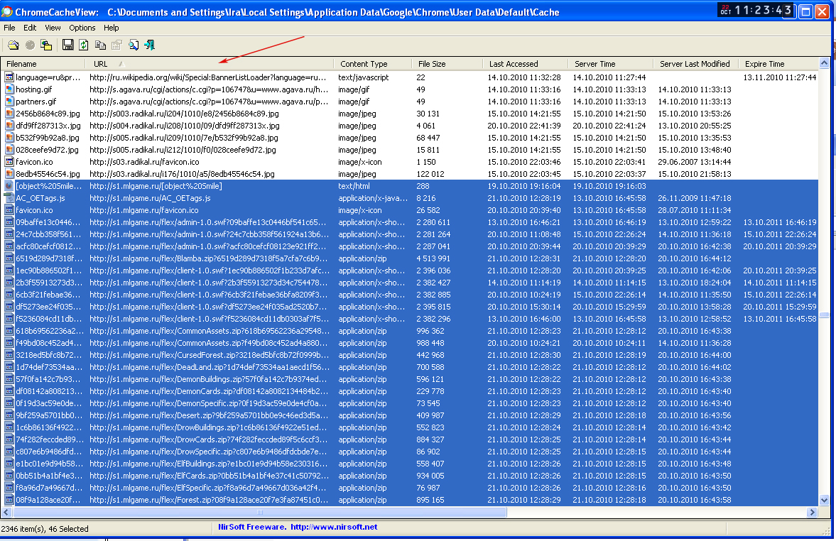 5. В отворилия се прозорец натиснете заглавието в колона URL, за да подредите надписите в таблицата.